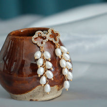 Como las perlas reales tienen tantos significados diferentes, son una maravillosa idea de regalo para mujeres. Este par de aretes de perlas colgantes están hechos de oro de 14k y cada arete tiene 8 piezas de cuentas de perlas reales. Está diseñado en 2 estilos. Los aretes de perlas colgantes de trébol tienen un trébol en la parte superior, que está decorado con cuentas de cristal; Los aretes en forma de uva tienen una hoja de uva dorada en la parte superior. El pin de oro de 14k es amigable con tu piel. Ambos estilos están diseñados de manera única.