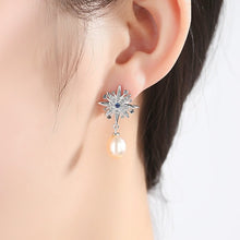 Freshwater Cultured Pearl and Diamond Drop Earrings in Sterling Silver(7-9mm)
