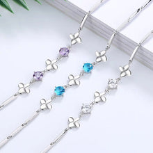 This elegant bracelet features 2 ice-blue crystals and 3 clove icons. The bracelet's chain is made of S925 silver, which is anti-allergy and offers a cool, chic style.