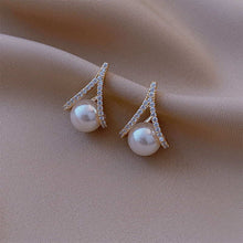 Pendientes colgantes de perlas triangulares | Pendientes de perlas blancas | Aretes de plata bañados en oro de 14 quilates