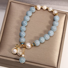 Pulsera Aguamarina Azul Diseño Oro | Elegante pulsera de jade rojo