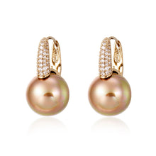 Los aretes de perlas y diamantes de 8-9 mm también se conocen como el tamaño "para llevar a cualquier parte" porque tienen un tamaño equilibrado y no son demasiado informales ni demasiado formales. Desde lejos, se trata de unos pendientes de perlas sencillos y atractivos; De cerca, los aretes colgantes de perlas y diamantes son ricos en detalles: cierres chapados en oro de 14k con incrustaciones de diamantes, pero los cierres finos no hacen que los aretes sean demasiado atrevidos. De esta manera, los aretes de perlas son perfectos para fiestas, oficinas, bodas e incluso para un viaje rápido al supermercado con una camiseta y jeans.