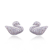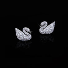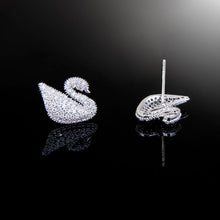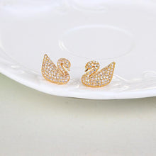 Crystal Swan Earrings Gold and Silver Swan Studs in S925 Silver Pin