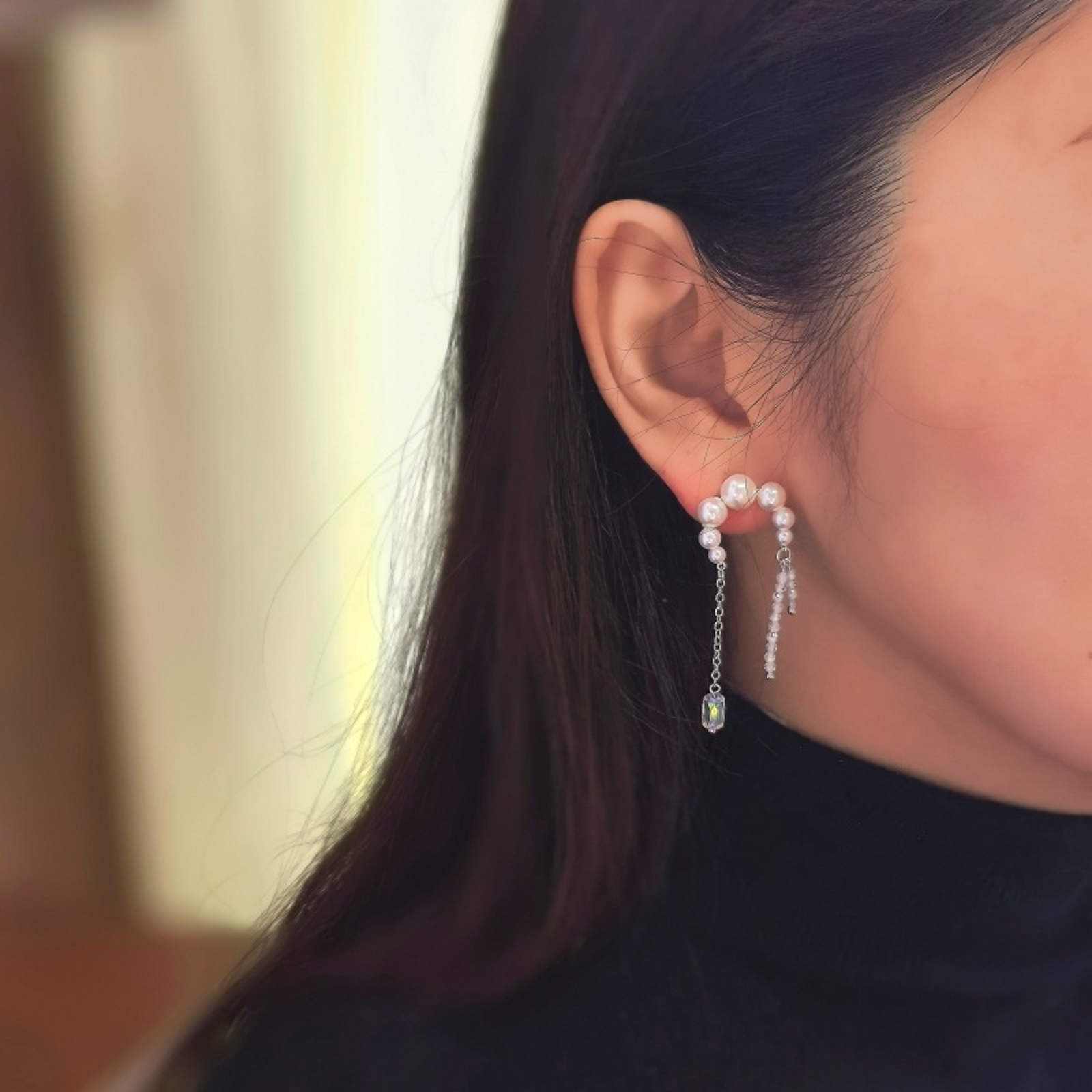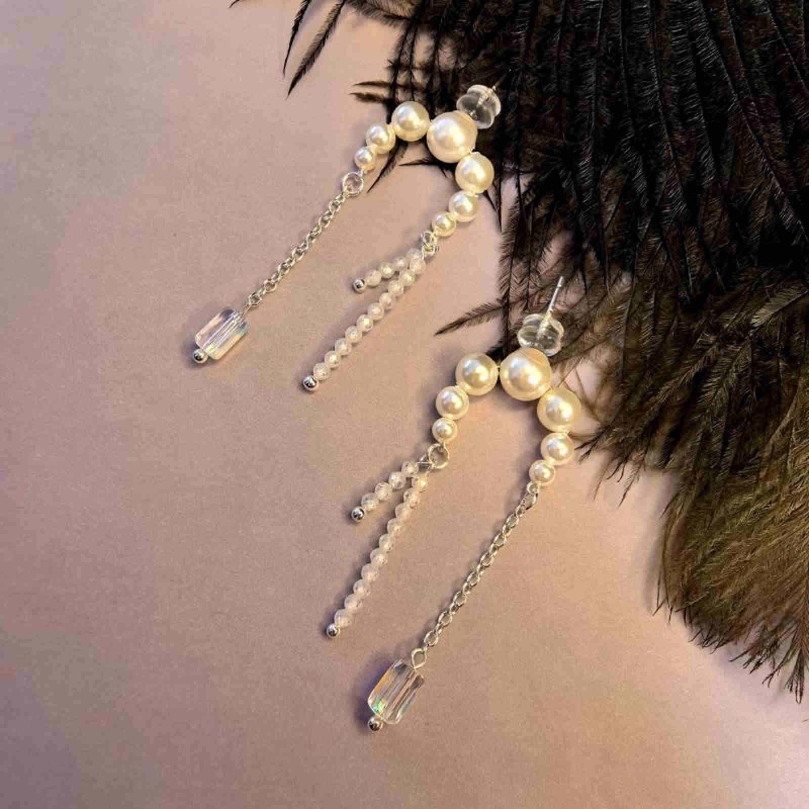 Exquisitely handcrafted earrings, designed as a true one-of-a-kind treasure. Each piece is uniquely made, ensuring an exclusivity you won’t find anywhere else. Delicately crafted with luminous shell pearls and sparkling Czech crystals for timeless elegance.
