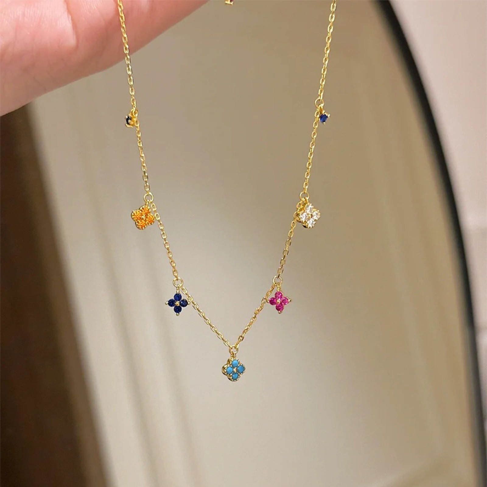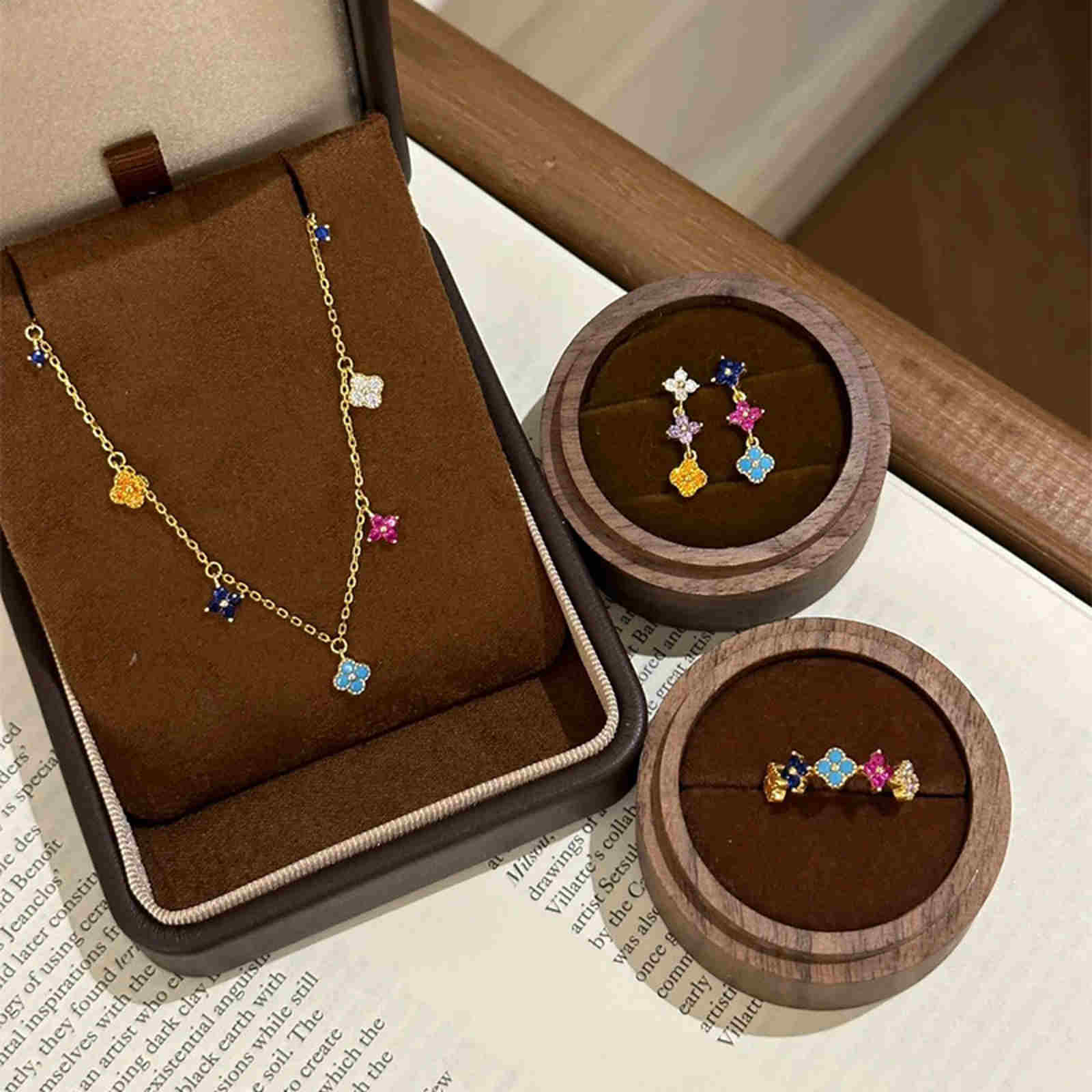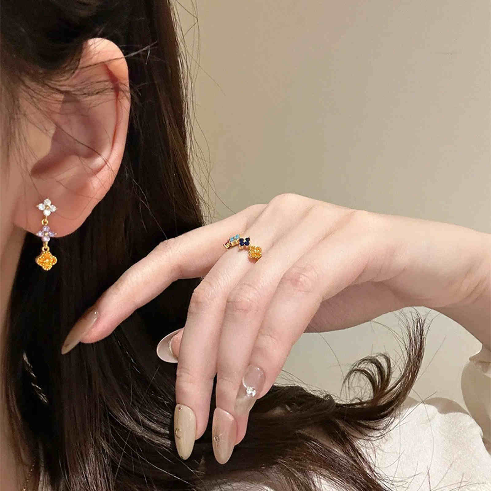 Shiny crystal clover jewelry collection, including necklace, earrings and ring to choose from.
