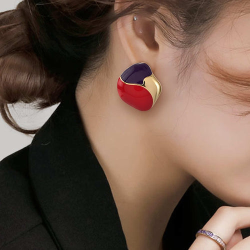 Boucles d'oreilles à tige conçues de style peinture à l'huile Boucles d'oreilles à trois couleurs primaires Grandes boucles d'oreilles à tige