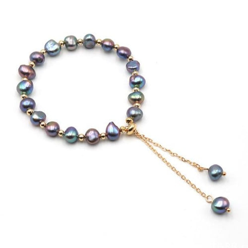 Real Baroque Pearl Bracelet | 14K Gold Blue Black Pearl Bracelet |Dainty Baroque Pearl Bracelets For WeddingsVendita