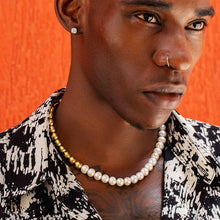 These pearl necklaces for men are all made of 10mm freshwater pearls and go with 10mm gold and silver metal beads. If you are at a loss for matching accessories, you should try these real pearl necklaces for men. The gold mens pearl necklace adds a bright touch to neutral looks and breaks up the tedious tone, suitable for those who like black, gray, and navy tones. The silver pearl necklace for men well balances the color of the cloth and enriches details to the blank between neck and collar. It is friendly to those who prefer light colors of white, gray.