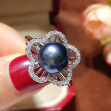 Adjustable black pearl diamond ring